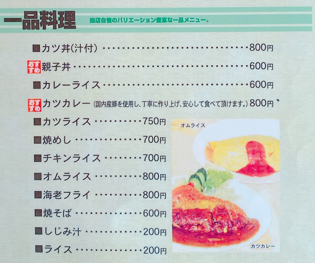 「 カツカレー 」 や 「 親子丼 」 がいちおしで、オムライスも食べたいメニュー。