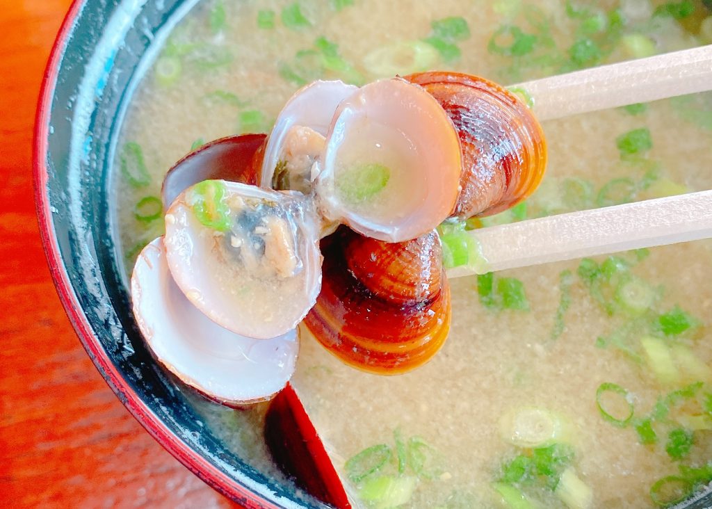 お味噌汁にはしじみが存分に入れられていて、濃厚なだしの風味が絶品です。