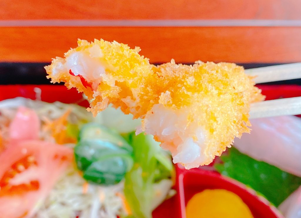 ぷりぷりな食感に驚かされるエビフライは、衣のサクサク感とえびの甘さが味わえます。