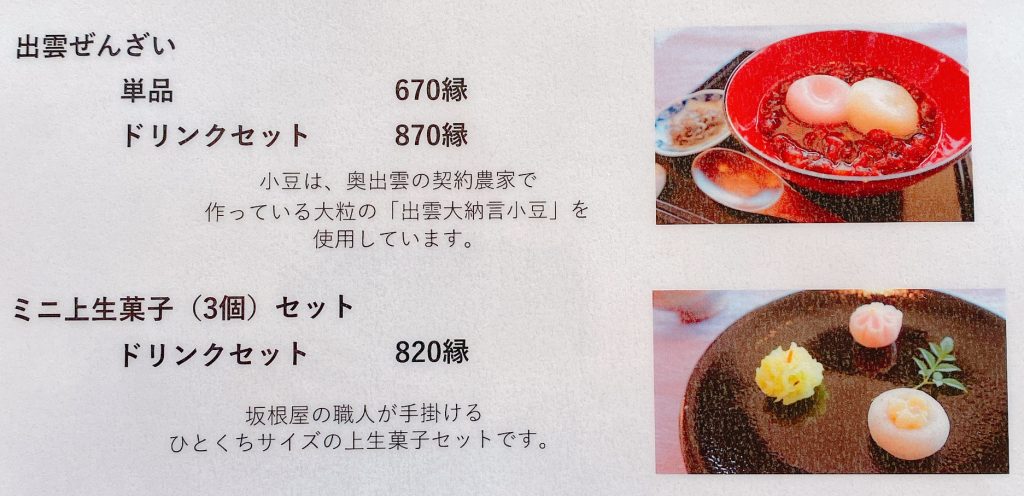 奥出雲で作られた 「 大納言小豆 」 を使用したぜんざい。