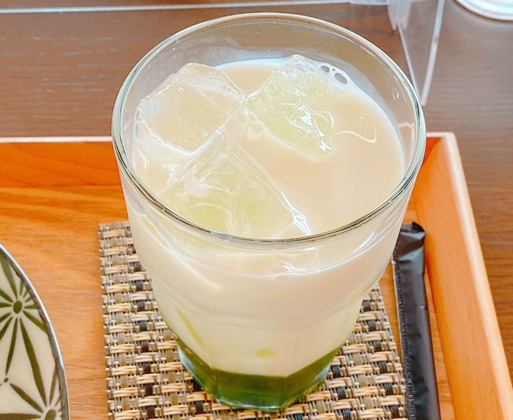 たっぷりのミルクと抹茶シロップが組み合わされていて、ほろ苦さとほどよい甘さの抹茶シロップがミルクによく合います。