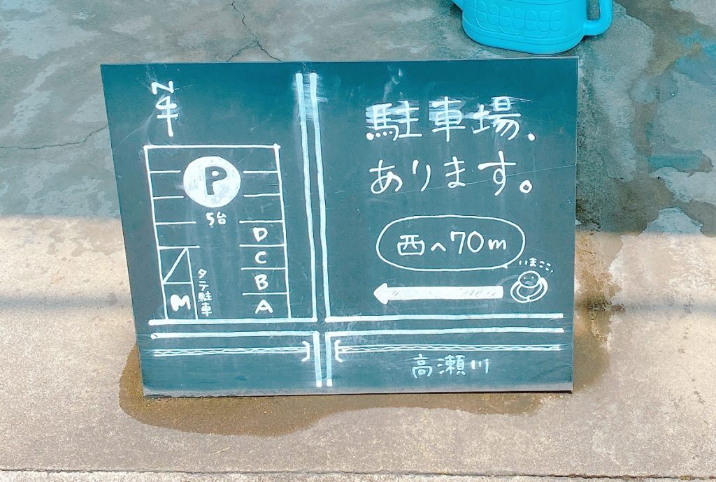 マザー食堂さんの駐車場は、お店から西に70m先に5台分のスペースがあります。
