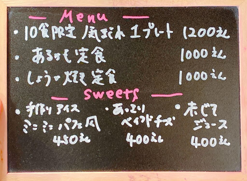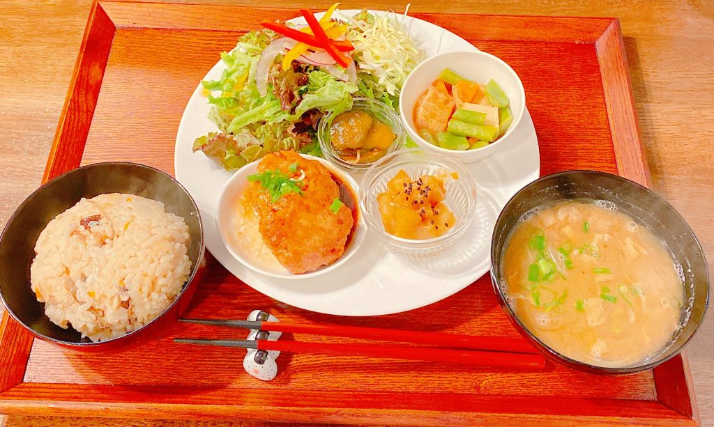 10食限定の週替わりで献立が変わる 「 気まぐれ1プレート 」 や、お店のオープンからずっと定番であり続ける 「 しょうが焼き定食 」 などがあります。