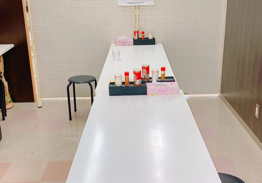 お買い物のお客さんが横を通り過ぎて行く環境ではありますが、店内のイートインスペースは壁で遮られているので食事に集中できます。