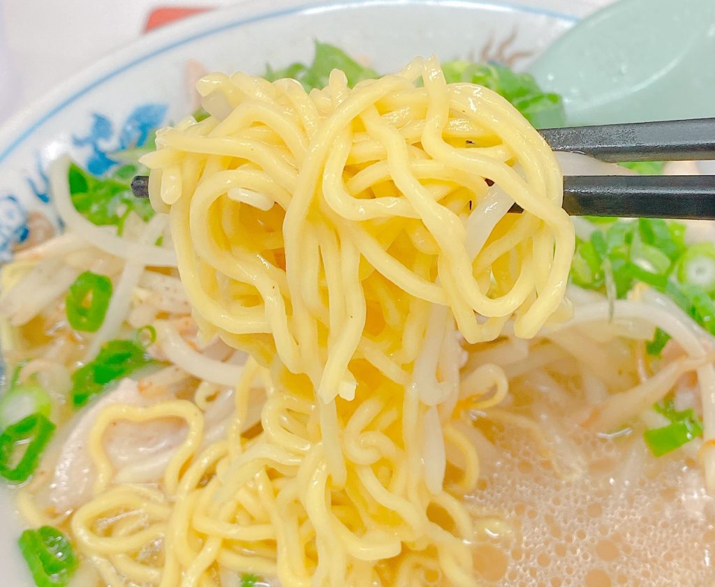ぷりっとした食感でスープがよく絡むちぢれ麺も、このラーメンにぴったりです。