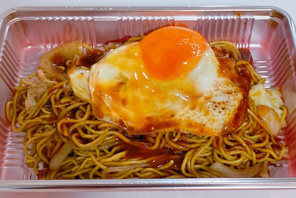目玉焼きがドンと乗せられたソース焼きそば。