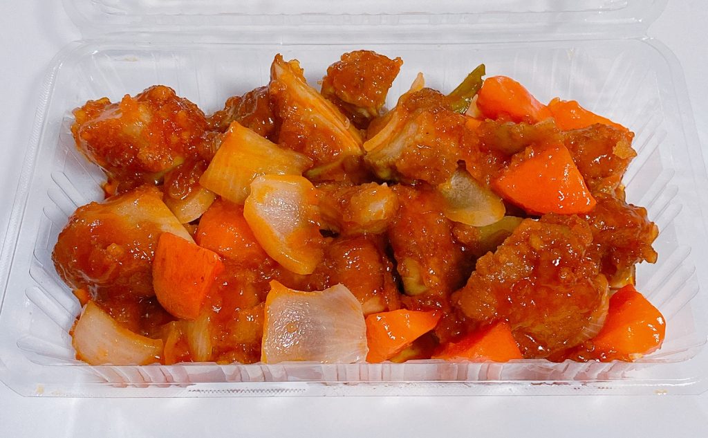にんじんや玉ねぎ、ピーマンなど酢豚でお馴染みの野菜がたっぷり。