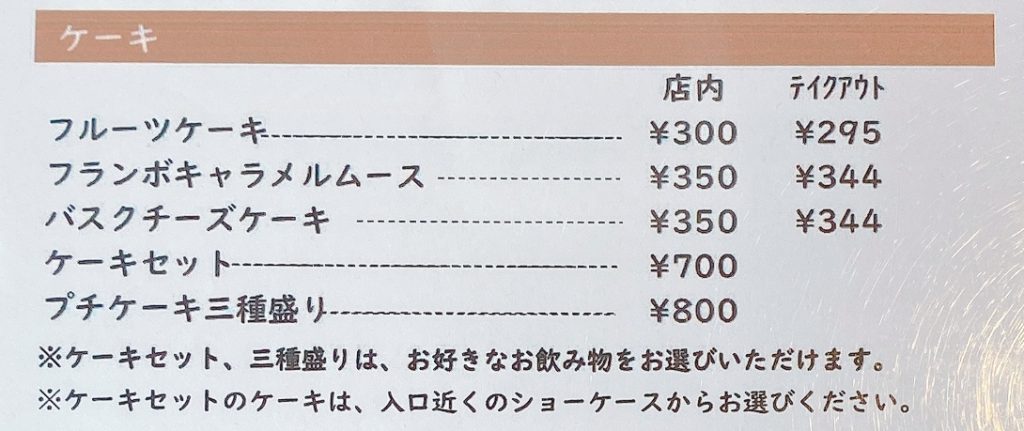「 ケーキセット 」 と 「 プチケーキ三種盛り 」 には、ドリンクセットになっています。