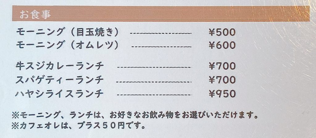 喫茶店といえばカレーやスパゲティーなどもはずせないメニューです。