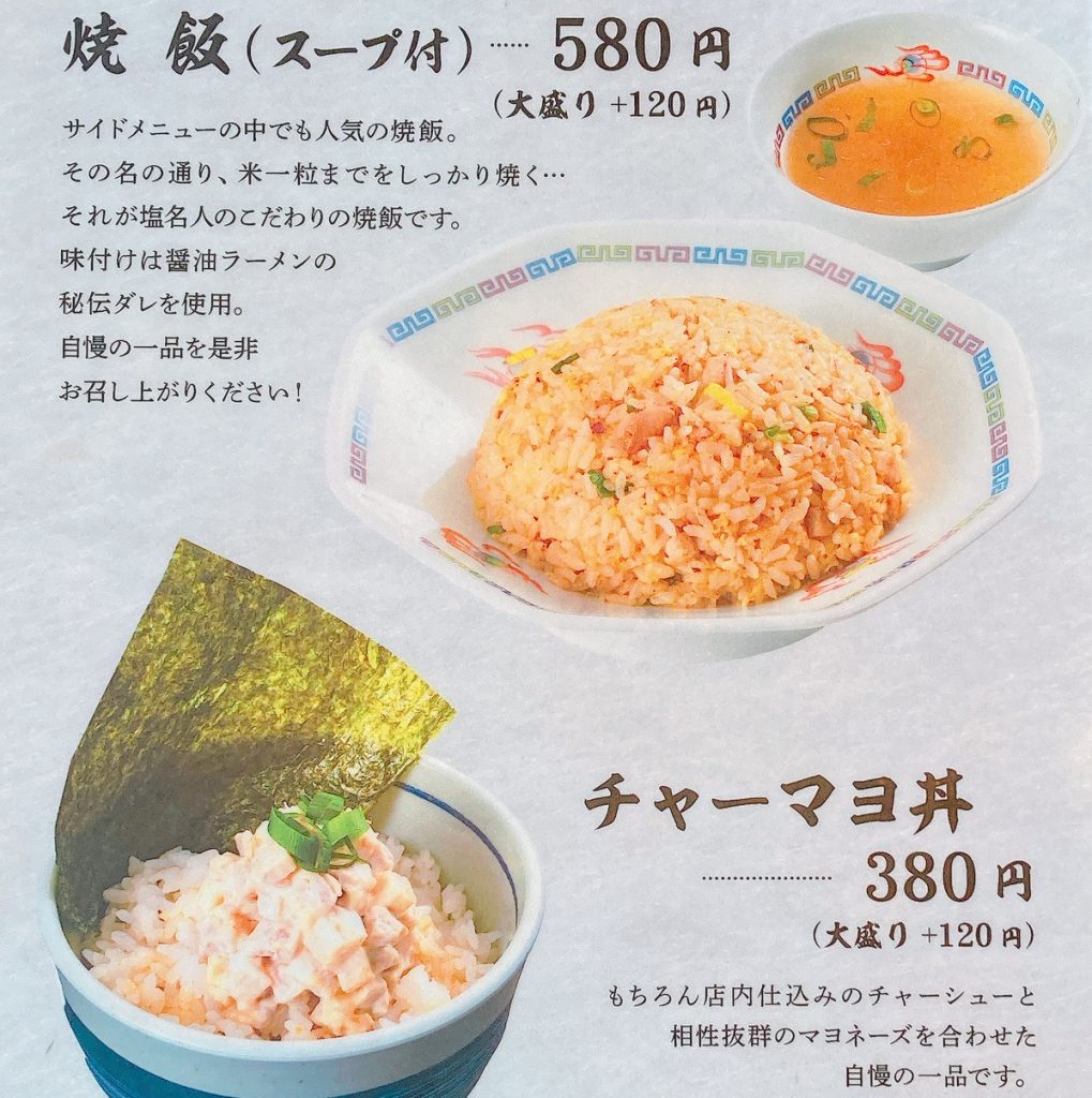 プラス300円でお好きなラーメンとハーフサイズの焼飯がセットにできる 「 焼飯セット 」 も注文。