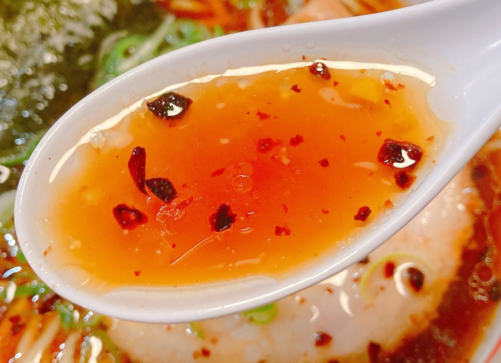 たくさんの種類の魚介や鶏をじっくと煮込んだような旨味がたっぷりな味わいで、スープに浮かべられている焦がしねぎの風味も効いていて奥行き感があります。
