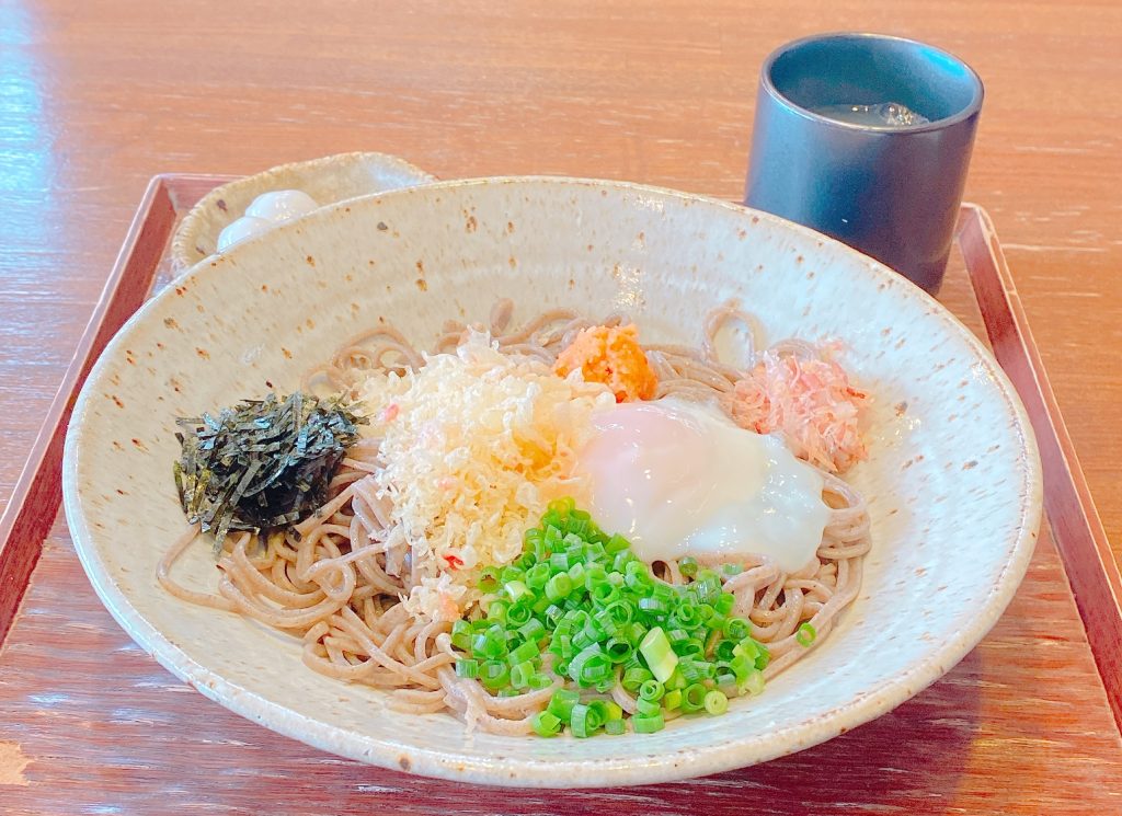冷たいおそばのメニューは、漆器に盛り付けられた出雲そば定番の 「 割子そば 」 の他にさまざまなトッピングがされているおそばがあります。