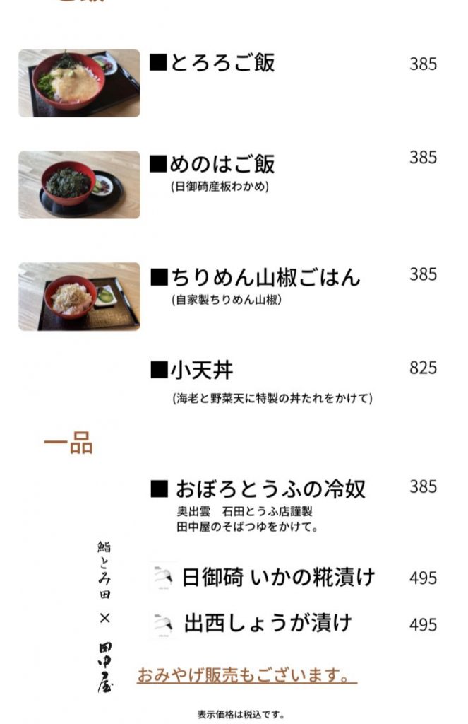 「 とろろご飯 」 の他に、日御碕で採れたわかめを使った 「 めのはご飯 」 などがあります。