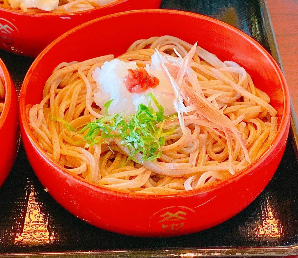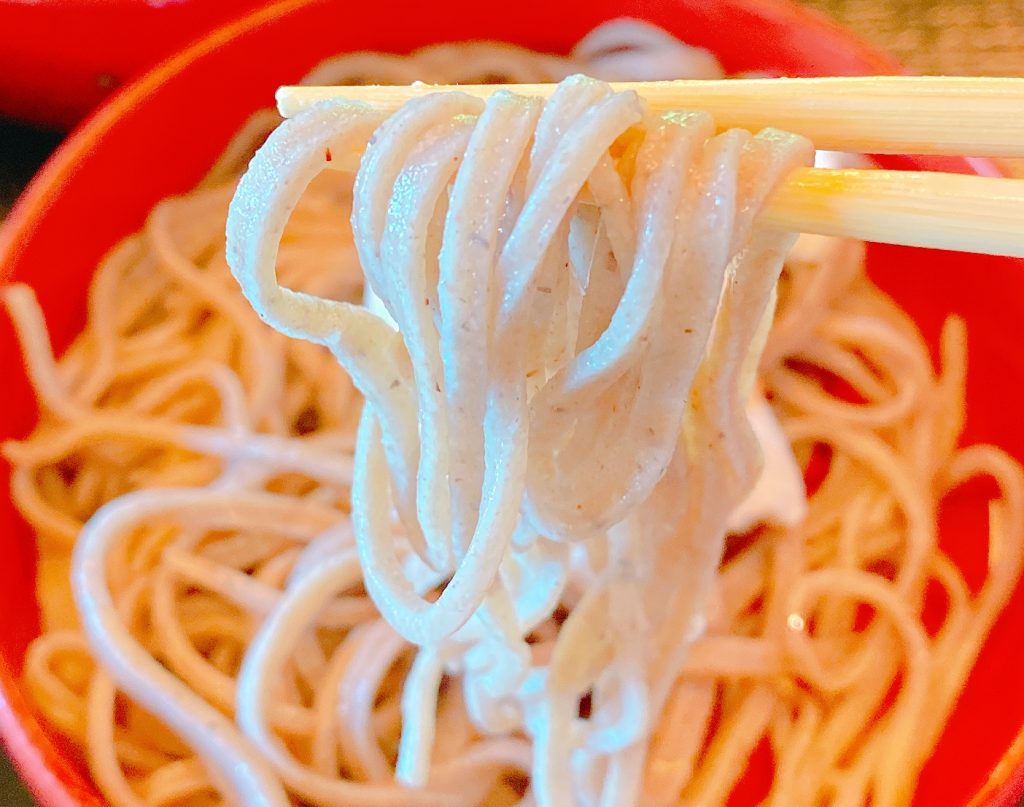 産地までこだわった粗挽きにされたそば粉を使うそばは、香りの良さがより一層味わえる仕上がりになっています。